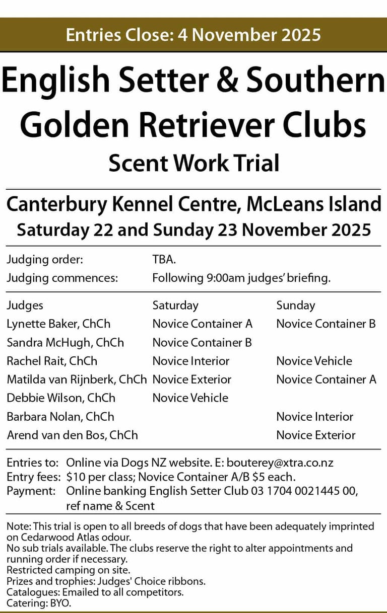 Gorden Setter and Southern Golden Retriever Club Scent Work Trial